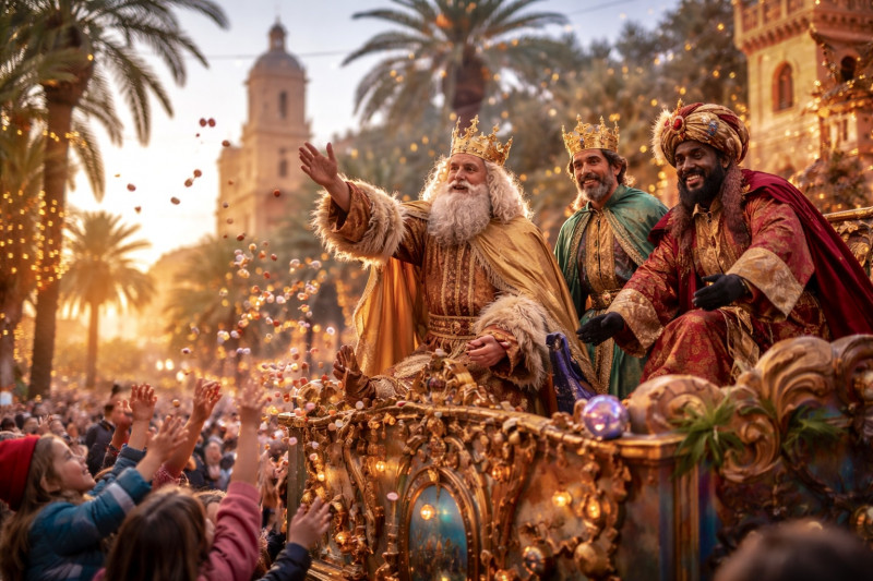 The Three Kings arrive on elaborate floats, waving to crowds and throwing sweets to children. Families line the streets, music plays, and the atmosphere feels joyful, warm, and a little bit magical—even for adults.
